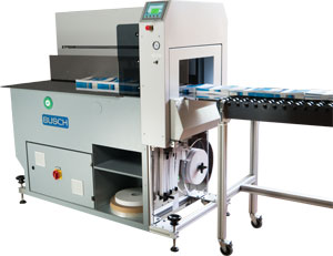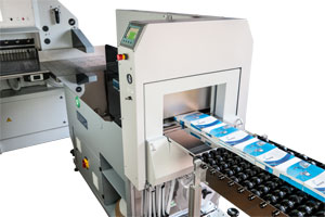 Ideal para el encintado automático de pilas de productos y filas de pilas de productos: la solución ideal detrás de las máquinas plegadoras con entrega de tejas y en guillotinas.