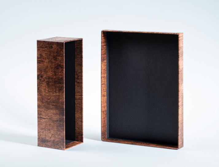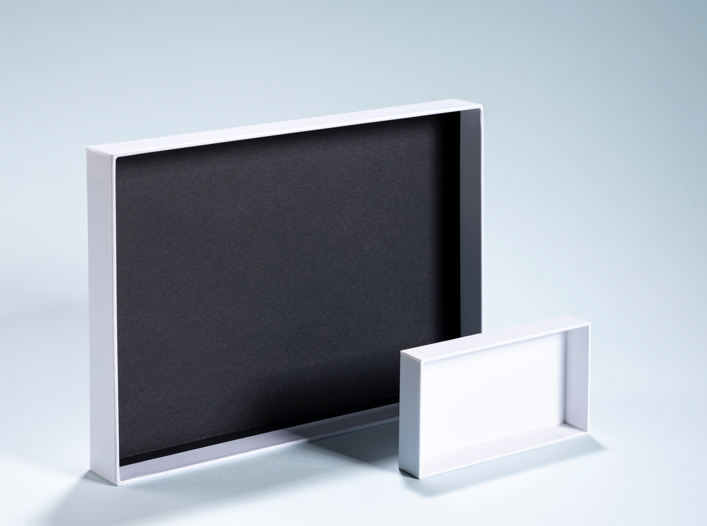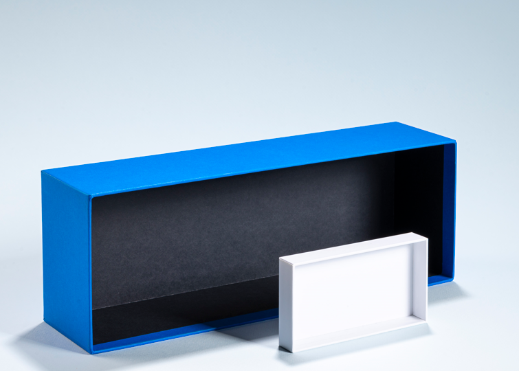 Caja rígida forrada (set-up box), un clásico del lujo en sectores como cosmética, joyería o gourmet, con amplias posibilidades.