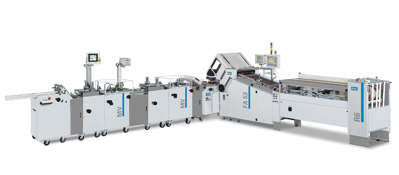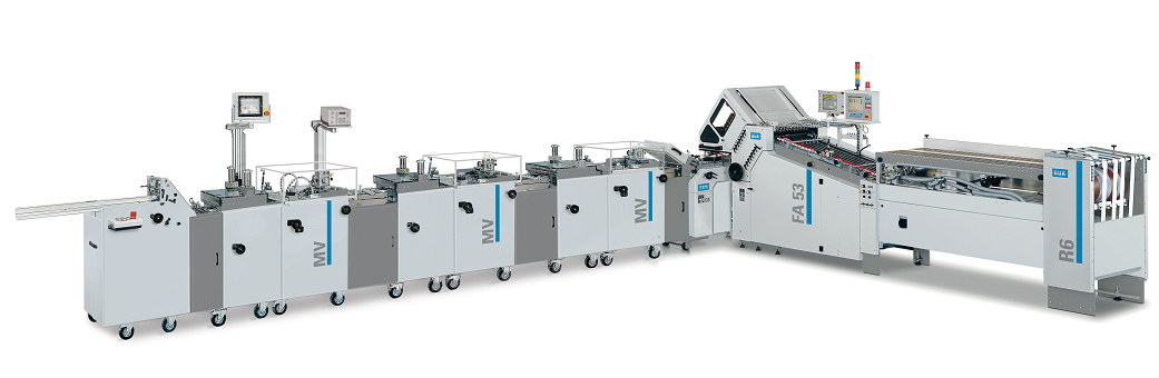 La nueva combinación de máquinas plegadoras para los productos patentados RTA-Outserts, Z-Cards, folletos, etc.